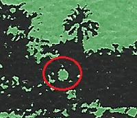weißer Punkt links neben der rechten Baumgruppe |