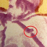 unten links mit schwarzem Fleck |